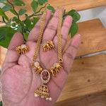 The Ad Double Elephant Necklace features an expertly crafted design showcasing two intricately detailed elephants, symbolizing strength and harmony. Made with high-quality materials, this necklace offers durability and an elegant finish that complements both traditional and contemporary styles. Its balanced design makes it a meaningful accessory for daily wear or special occasions, embodying cultural richness and craftsmanship.
