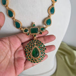 Embrace timeless elegance with this Jyothika-inspired haram, expertly crafted to reflect classic South Indian jewelry aesthetics. Featuring intricate designs and a luxurious finish, this piece enhances traditional attire with sophistication and cultural charm. Perfect for weddings and festive occasions, it offers both authenticity and style for discerning jewelry enthusiasts.