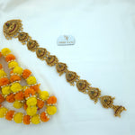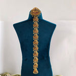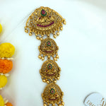 The Peacock Jada Billa is an expertly crafted hair accessory designed to enhance traditional hairstyles with elegance. Featuring intricate peacock-inspired detailing, it adds a regal touch to bridal or festive looks. Durable and lightweight, this piece sits comfortably in the hair, securing your style while elevating your overall appearance with timeless charm. Ideal for special occasions, it perfectly complements ethnic attire, showcasing craftsmanship that reflects cultural heritage.