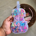 This Guitar kids hair combo offers a versatile collection of hair accessories designed for comfort and style. It includes soft cloth hair bands, small hair clips, and a large netted hair band, all thoughtfully packaged in a Guitar-themed box. Perfect for keeping hair neatly in place while adding a charming touch, this combo suits various hairstyles and occasions, ensuring both practicality and playful appeal for children.