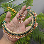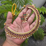 Crafted with expertise, the Reversible Kemp Guttapusalu offers timeless elegance and versatility. Featuring traditional Kemp stones set on a rich guttapusalu base, this reversible design allows you to showcase two distinct looks in one piece, perfect for both classic and contemporary occasions. The durable construction ensures lasting shine and value, making it an essential addition for discerning jewelry collectors.