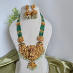 Elevate your traditional attire with the Premium Lakshmi Green Haram, a meticulously crafted necklace that combines timeless elegance with cultural significance. Featuring a rich green hue symbolizing prosperity, this haram showcases intricate design work centered around the revered Lakshmi motif, embodying wealth and good fortune. Ideal for special occasions and festivals, this piece adds a regal touch while reflecting expert craftsmanship and enduring quality. Perfect for those seeking a blend of heritage and sophistication in their jewelry collection.