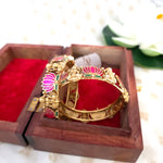 The Lakshmi Lotus Bangle is a finely crafted piece inspired by the lotus, symbolizing purity and prosperity. Expertly designed, this bangle combines traditional elegance with modern sophistication, making it an ideal accessory for both formal occasions and everyday wear. Its balanced form ensures comfortable fit while adding a touch of cultural heritage to your collection. Perfect for those who appreciate meticulous craftsmanship and meaningful design.
