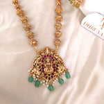 Lakshmi Aishwaryam Haaram is a meticulously crafted piece designed to embody prosperity and elegance. This exquisite haaram features traditional motifs inspired by divine Lakshmi, symbolizing wealth and auspiciousness. Its intricate craftsmanship ensures lasting beauty, making it an ideal choice for special occasions and ceremonial wear. Elevate your jewelry collection with this timeless representation of abundance and grace.