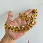 The Multi Lakshmi necklace beautifully showcases multiple Lakshmi motifs, symbolizing wealth and prosperity. Crafted with attention to detail, it offers an elegant centerpiece that enhances any attire. This necklace blends traditional significance with refined design, making it a distinguished choice for special occasions or daily wear. Its intricate artistry reflects cultural heritage while promising lasting charm and grace.