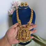 Beautiful lakshmi idol matte gold haaram with Jhumka