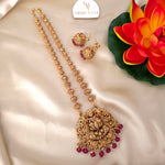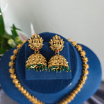Elevate your traditional ensemble with the Padmavati Haaram paired exquisitely with matching Jhumkas. This set showcases intricate craftsmanship, blending classic design with timeless elegance. Perfect for special occasions, the haaram and jhumka complement each other to highlight your grace and cultural heritage. Crafted for durability and style, this duo adds a refined touch to any ethnic wardrobe.