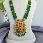 Elegant and traditional Green beads Haram with Laxmi Temple design